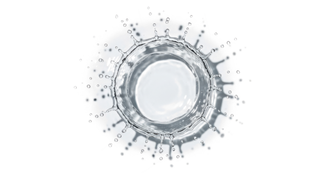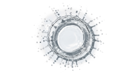Blue water splash a circular water splash creating ripples and droplets, isolated on transparent background