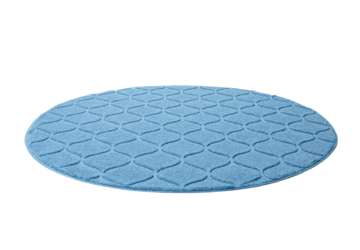 Blue circular bathroom rug with wave quilted texture, isolated on a transparent background