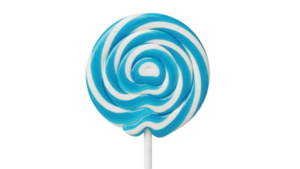 Swirled lollipop isolated PNG on transparent background, blue and white candy with stick for sweet treat and confectionery designs