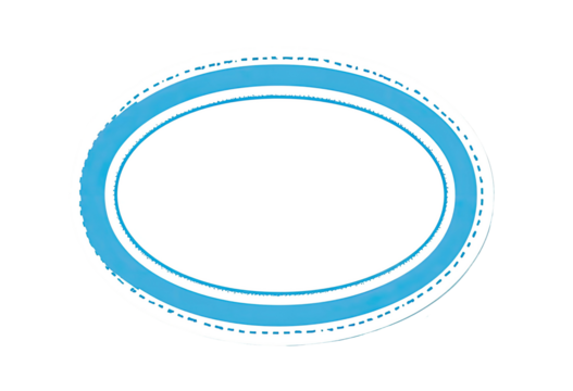 A stylized oval frame with a light blue inner and outer outline on a black background