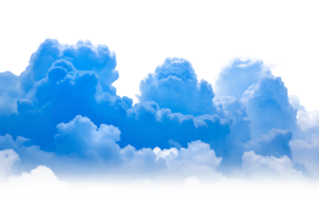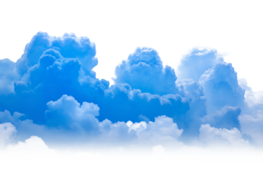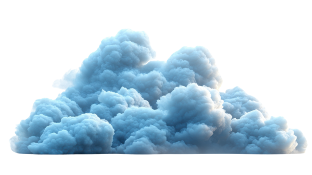 Fluffy blue clouds on a transparent background, perfect for creative designs and nature-themed projects.