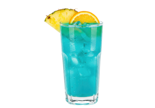 Set of Refreshing tropical blue cocktail with pineapple garnish isolated on a transparent background