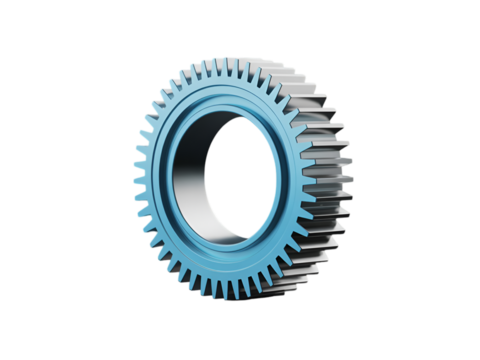 Metallic cogwheel with blue center and silver teeth isolated on a transparent background gear