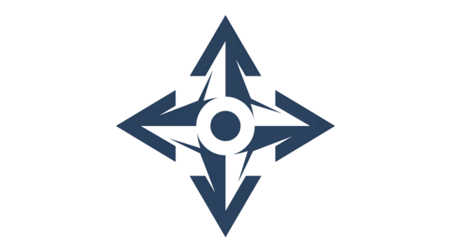 Dark Blue Stylized Compass Rose Icon with Arrows for Direction and Navigation Isolated Vector isolated PNG with Transparent Background