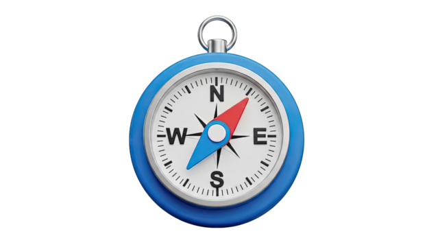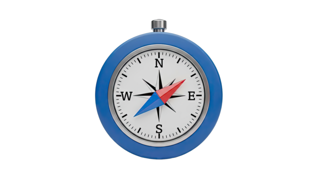 Blue compass isolated on transparent background, navigational tool for direction finding and outdoor adventure