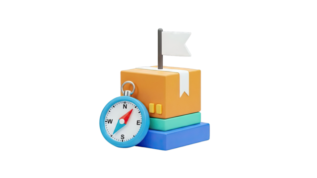 A silver and blue compass with a yellow ring on a transparent background isolated on transparent background