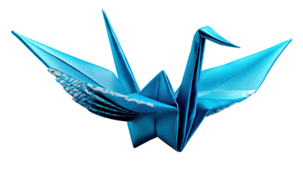 Origami Crane: A solitary blue paper crane, a symbol of artful craftsmanship and delicate balance, unfolds against a serene backdrop.