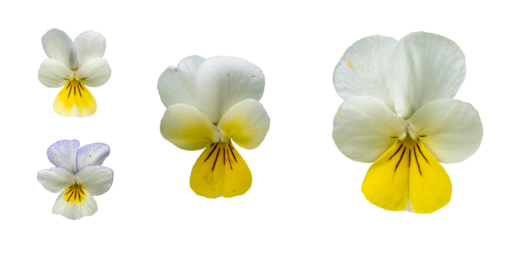 Viola arvensis flowers isolated on transparent background. PNG file.