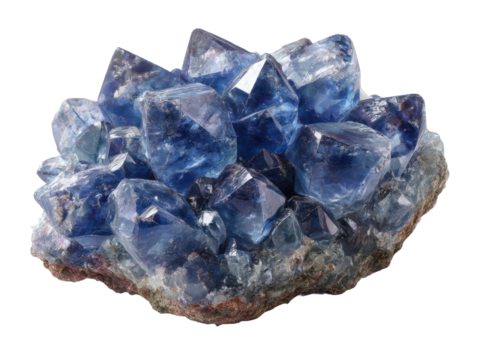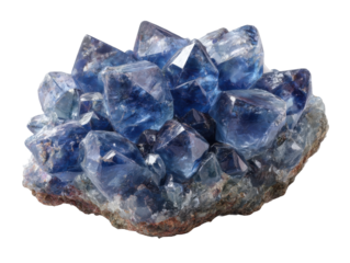 Stunning blue crystal cluster gemstone mineral specimen geology science isolated on transparent background