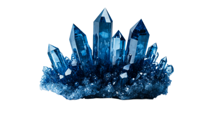 A cluster of blue crystal shards isolated on transparent background, a mineral formation