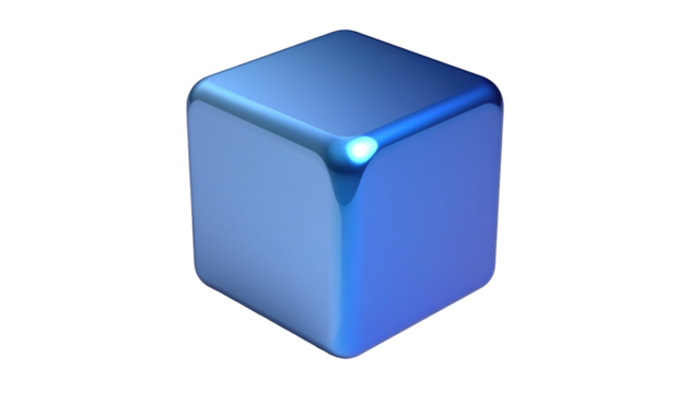 Abstract 3D Rendered Blue Cube on Transparent Background Design