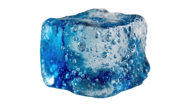 Stacked blue ice cubes with water droplets on a transparent background PNG image for refreshing beverage concepts