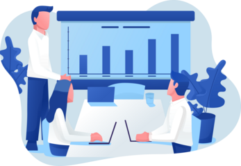 Business Meeting with Bar Graph Presentation in Transparent Background Flat Vector Illustration Conference Room Meeting Table with Laptop