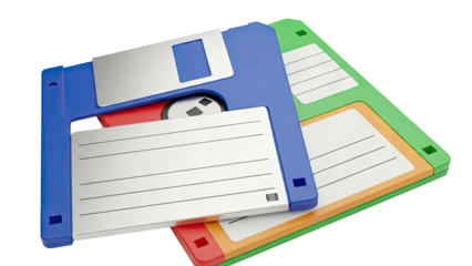set of retro-style portable CD player with blue details and headphones on a transparent background. Front view, angled view, side view, perspective view. Disc player.