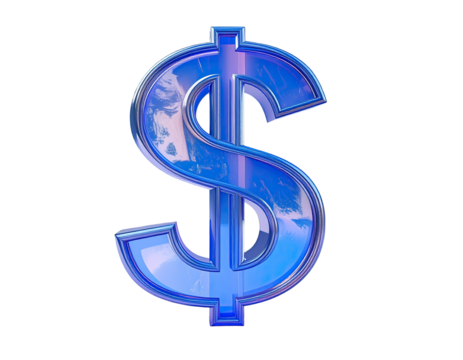 Translucent blue dollar sign isolated on transparent background, currency symbol for finance and business concepts PNG