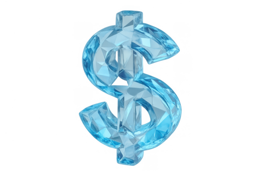 Dollar symbol rendered with a shimmering ice and diamond-like surface texture, representing monetary value and financial success