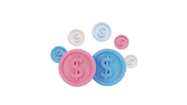 Blue dollar sign isolated PNG, 3D rendering of currency symbol with orange outline on transparent background for finance and business use
