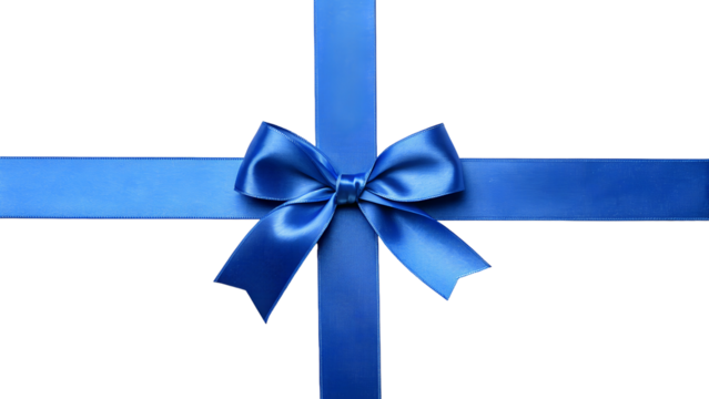 Elegant Royal Blue Satin Ribbon Bow with Horizontal and Vertical Wrapping on Clean White Background for Gift Packaging, Celebrations, and Festive Designs