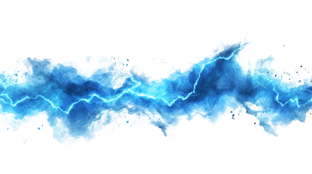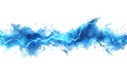Abstract blue lightning and cracks on white background in watercolor painting style.