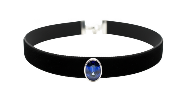 Black velvet choker necklace with oval blue sapphire gemstone image