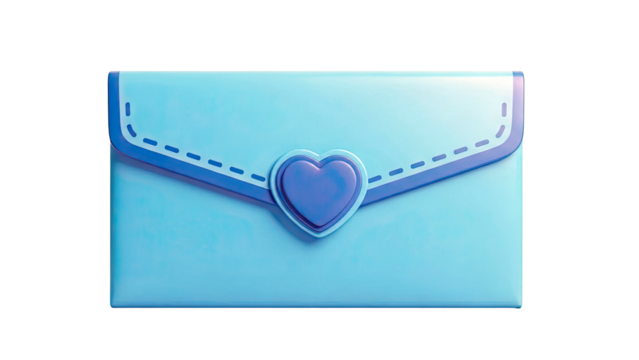 Elegant blue envelope with decorative seal isolated on transparent background, png