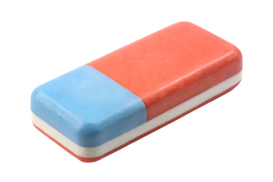 Two red and blue erasers with white stripe detail isolated on a transparent background