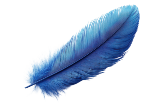 A single vibrant blue feather with smooth texture and delicate structure, isolated on transparency background, symbolizing lightness and freedom
