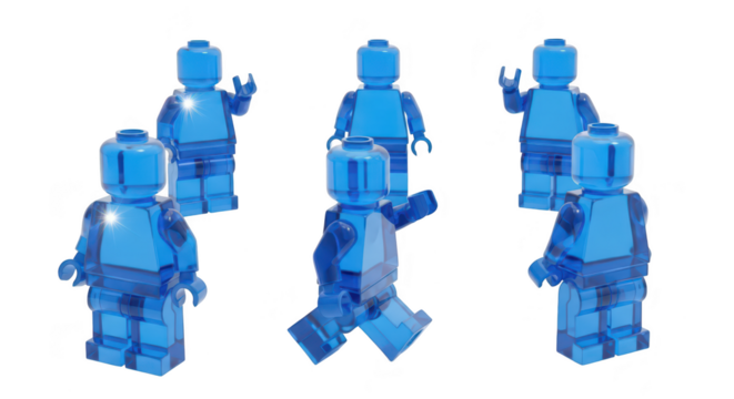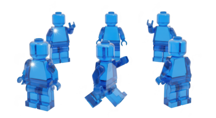 Translucent blue figures interacting gesturing and walking against a clean white background suitable for concepts of community and teamwork