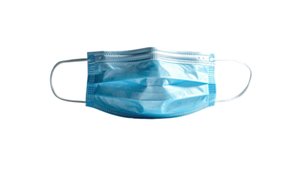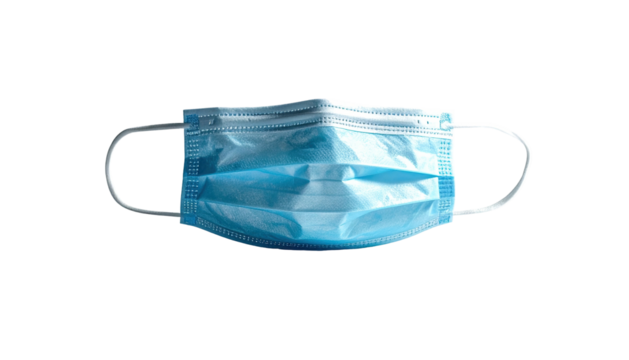 A blue surgical mask with pleats and ear loops designed for respiratory protection.