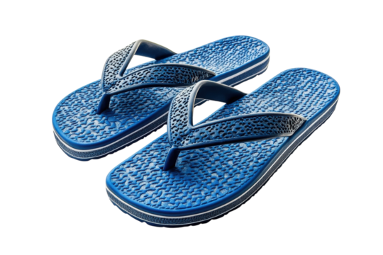 Stylish blue flip flops with textured soles perfect for summer beach days and casual wear Dark on transparent background