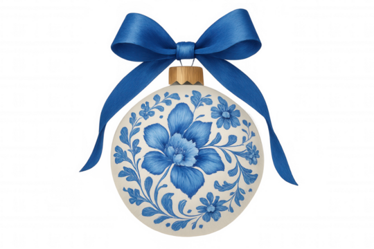 Blue floral ceramic pitcher isolated on a transparent background