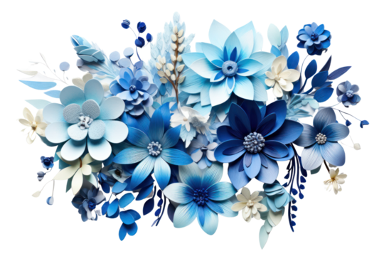 Beautiful blue flowers arrangement nature isolated on transparent background, png