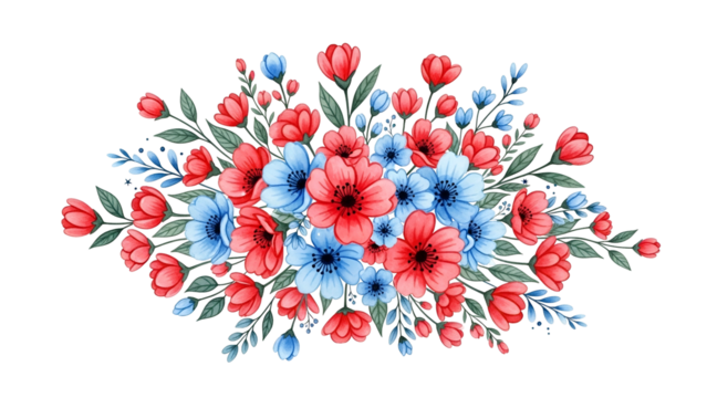 Colorful Floral Arrangement of Red and Blue Flowers on Transparent Background
