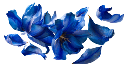 Vibrant blue flowers with delicate petals on transparent background