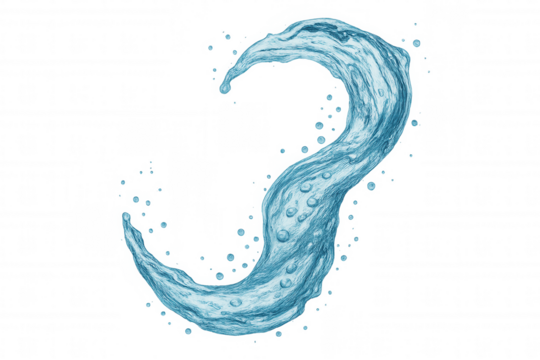 Dynamic water splash forming an energetic wave or swirling liquid motion, blue fluid element with droplets