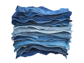 Abstract layered blue denim fabric texture with wavy edges isolated on transparent background