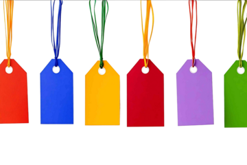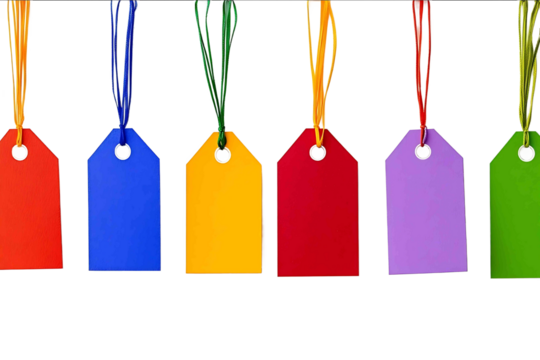 Festive colorful gift tags on display isolated on white background photo front view variation high detail texture ultra detail midshot