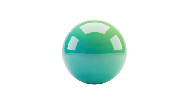 3D Glossy sphere with green and blue gradient and reflections on transparent background