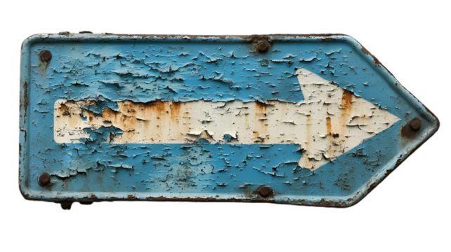 Blue Road Sign Arrow Pointing Left with Worn Texture