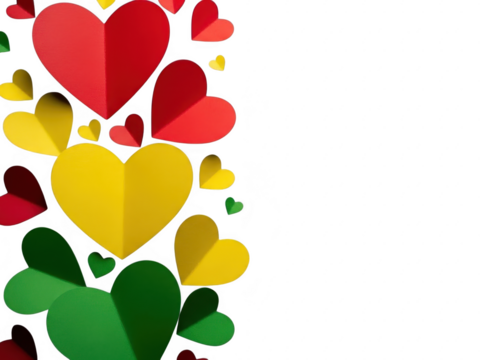A colorful collection of hearts in different sizes and colors on a transparent background