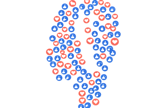 Red and blue heart shaped forming a lightbulb on white background isolated on a transparent background