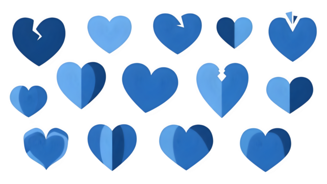 Blue heart shaped gems, valentine's day decor, jewelry elements, isolated on transparent background