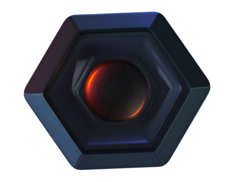 3D Blue Hexagon Shape with White Circle Hole Isolated on White on transparent background