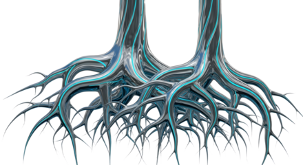 Metallic blue abstract, sleek curves with neon highlights against black