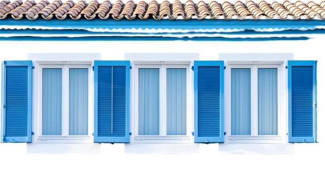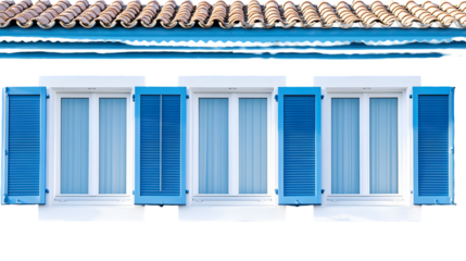 Rows of Closed Blue Shutters on Building Facade Minimalist Architectural Pattern with Repeating isolated on a transparent background