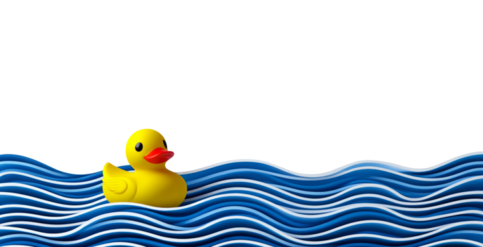 optical illusion of horizontal waves, a rubber duck floating in the center, creating a playful contrast between hard lines and soft textures