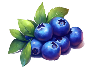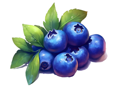 A realistic depiction of fresh raw blueberries with a rich blue hue detailed texture and green leaves isolated on white background