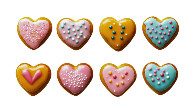 Heart-Shaped Cookies with Colorful Pink and Blue Icing, Perfect for Desserts, Celebrations, Valentine's Day, or Festive Party Treats, Showcasing Decorative and Gourmet Baked Goods