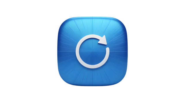 A blue icon with a white circular arrow on a black background