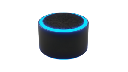 Futuristic oval device with glowing blue light isolated on transparent background